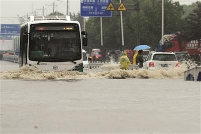 昨天,一辆公交车经过常州市积水路段。陈暐 摄