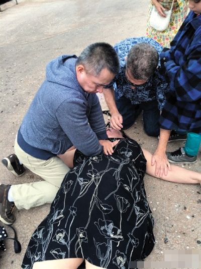 跪地抢救游客10分钟