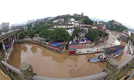 昨日,沙坪坝区,嘉陵江江水陡涨,磁器口部分江岸被洪水淹没。 首席记者 钟志兵 摄