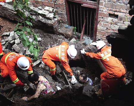 暴雨房垮两老人被埋