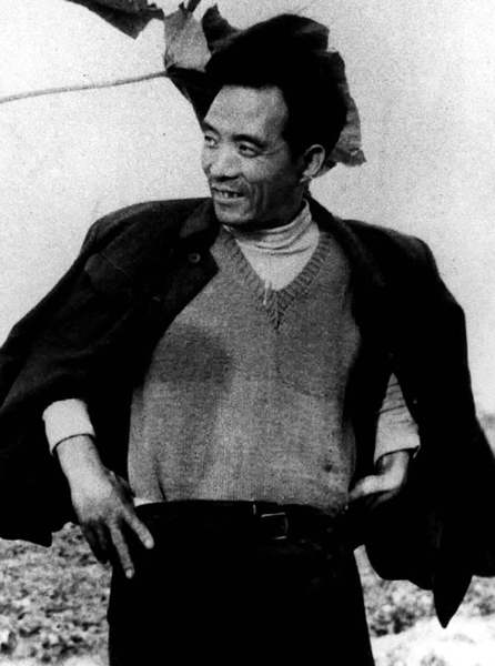 焦裕禄在泡桐前的留影(资料照片)。新华社发
