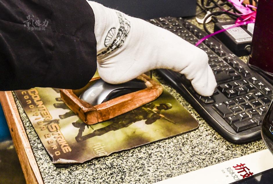 12年间,他先后出版了诗集《刘冰诗集》和综合文学集《折翅飞翔》两部书,近20余万字。图为刘冰靠左脚进行电脑操作。袁宏 摄 图片来源:齐鲁网