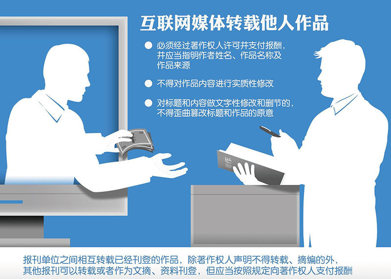 4月17日,国家版权局发布《关于规范网络转载版权秩序的通知》,全文共九条,包括四方面内容:一是明确了著作权法律法规中涉及网络版权转载的几个重要问题。二是引导报刊单位和传统媒体进一步改进内部版权管理工作。三是鼓励报刊单位和互联网媒体积极开展版权合作。四是要求各级版权行政管理部门加大版权监管力度。
