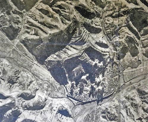 此次披露的史料中,一张由日军朝日新闻社随军记者1939年10月拍摄的日本佐濑航空部队轰炸延安图格外引人注意。图上清楚地显示,延安城区浓烟滚滚,数处火光冲天。