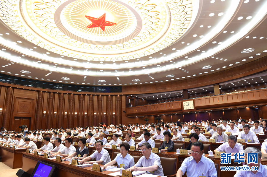 7月1日,十二届全国人大常委会第十五次会议在北京人民大会堂闭幕。这是常委会组成人员进行表决。 新华社记者饶爱民摄