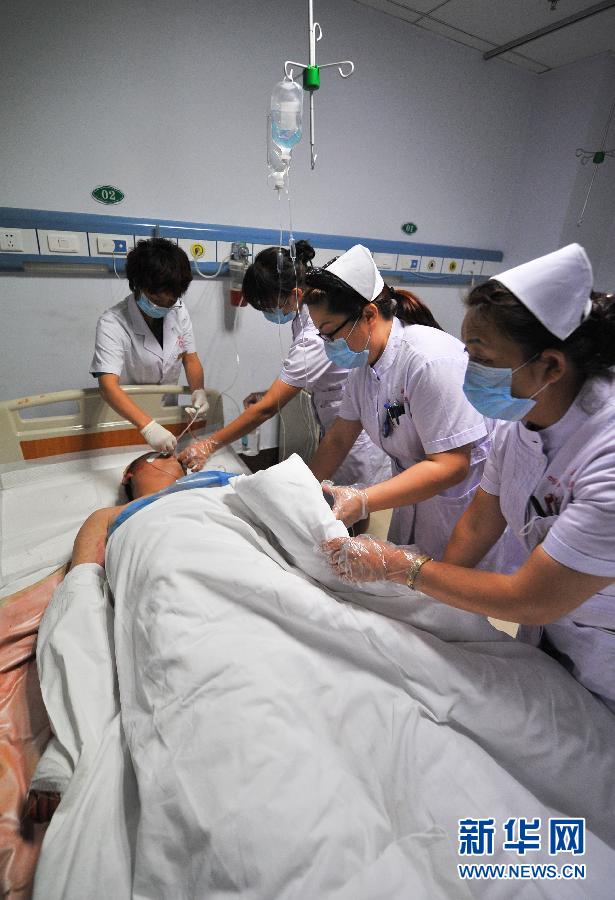 7月1日,集安市医院的医护人员对一名在车祸中受伤的韩国人进行救治。 新华社记者 许畅 摄