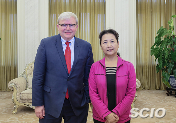 崔玉英在京会见澳大利亚前总理、美国亚洲协会政策研究院主席陆克文(焦非 摄影)