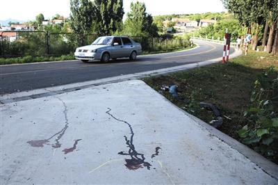 昨日下午4时许,现场大摊血迹已被泥土掩埋,路面上只残留有玻璃碎碴和两道血迹。在路旁的浅沟中,散落着一只蓝色的运动鞋和轿车保险杠等零部件。