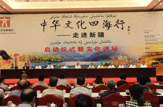 人民网乌鲁木齐6月25日电 (记者盛卉)由国务院参事室、中央文史研究馆和新疆维吾尔自治区人民政府共同主办的大型系列文化活动“中华文化四海行——走进新疆”今日上午在乌鲁木齐市新疆国际会展中心启动。