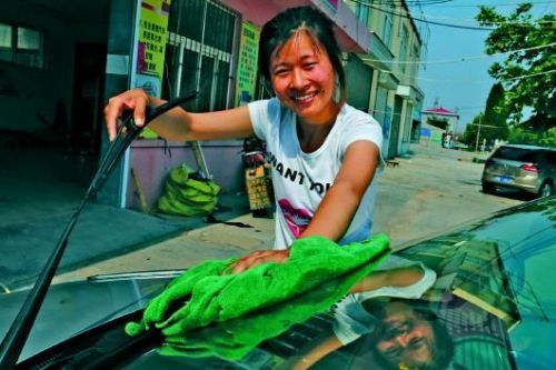 枣庄姑娘明秀萍已是胶州一家汽车装潢店的老板娘。本报记者 刘震 摄