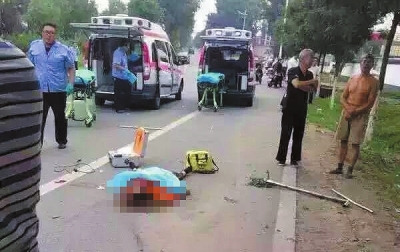 现场遗留的粉红色自行车的主人是一名姓齐的环卫工人,今年40多岁,儿子刚参加完高考。她每天凌晨4点半开始打扫街面。齐女士的丈夫说,事发时,齐大姐距离下班只有10分钟的时间。