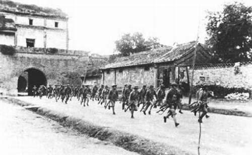图为驻守北平宛平城的中国军队奔赴卢沟桥抵抗日军。