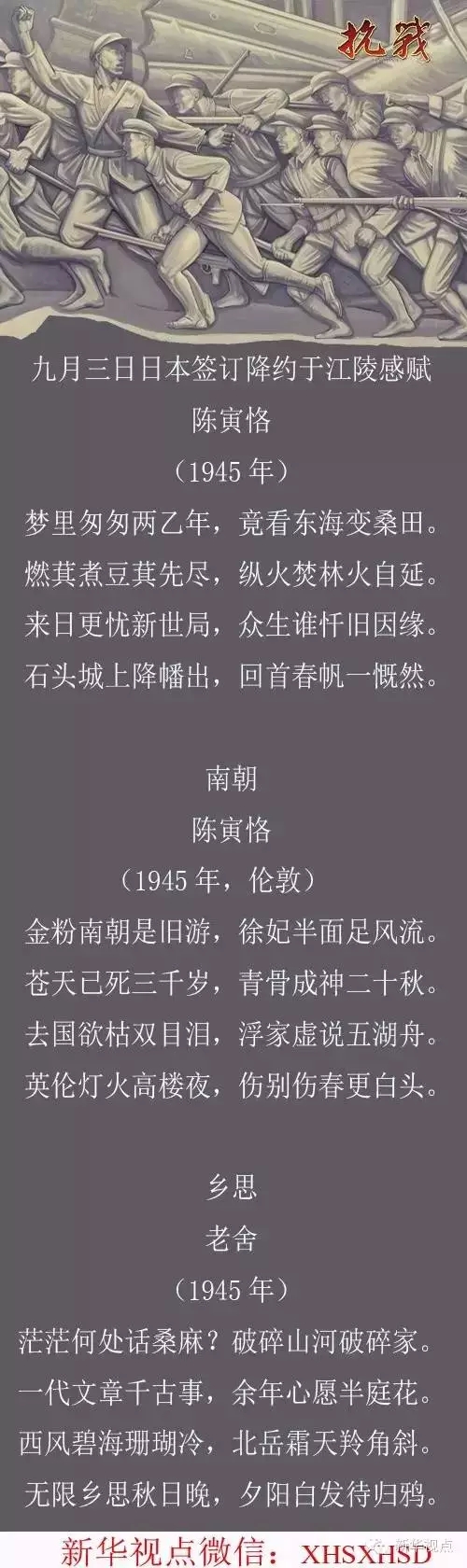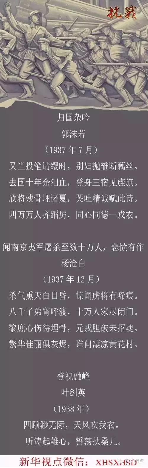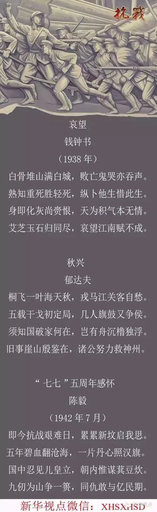 今年是“七七事变”爆发78周年。殷忧启圣,“国无大小,忘战必危”。今天我们选了12首抗战时期的旧体诗,大家可以在诗词中重温这段波澜壮阔的历史。