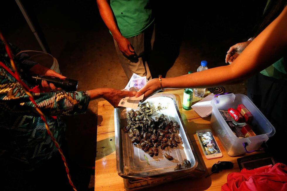 在繁华的夜市里,一些大排挡将清洗干净的知了幼虫用油炸后放上作料,成为餐桌上美味佳肴。据了解,由于野生“知了猴”不仅风味独特、含有丰富的蛋白质,而且具有良好的保健作用,所以市场需求量这几年越来越大,价格更是一路飙升。为保持“知了猴”新鲜,当晚便有不少摊贩在村头道路边摆摊设点、点灯收购,随后再迅速转手给外地客商。