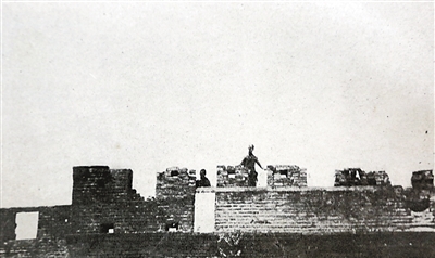 ▲日军拍摄的七七事变发生后第29军将士在宛平县城上监视日军图