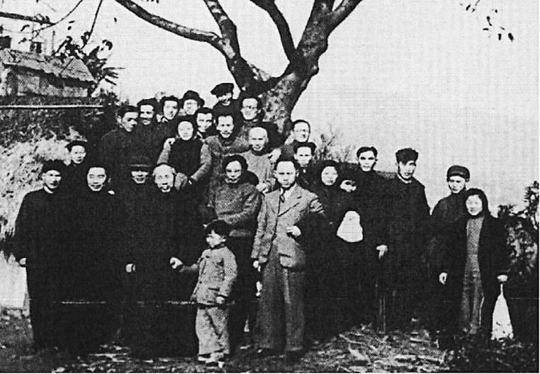 1946年2月,中共中央南方局负责人周恩来(前排左二)、董必武(前排左三)与红岩村八路军驻重庆办事处工作人员合影。(四川省委党史研究室提供)