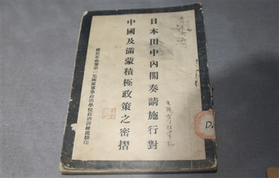 展品:田中奏折即为日军侵华之始的证据。曾为日本绝密件,后被台商获得
