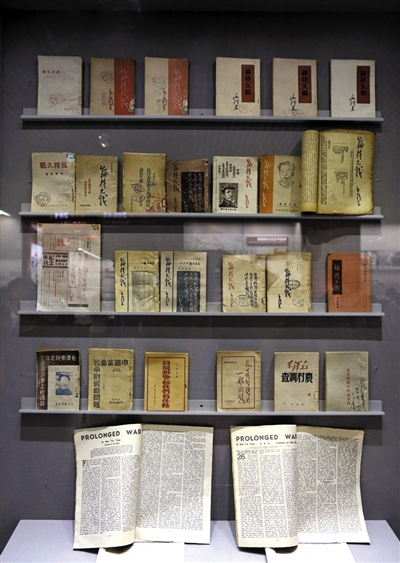 毛泽东的《论持久战》是抗战期间重要纲领之一,此前曾展示其9个版本,本次将包括英文版在内的20个版本的《论持久战》同柜展出,证明其被广泛认同。