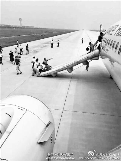 昨天现场的照中,还有一些乘客站在中间翼的发动机上往下跳。网友纷纷吐槽:“他们不嫌烫屁股吗”、“乘务员没有尽到责任”。