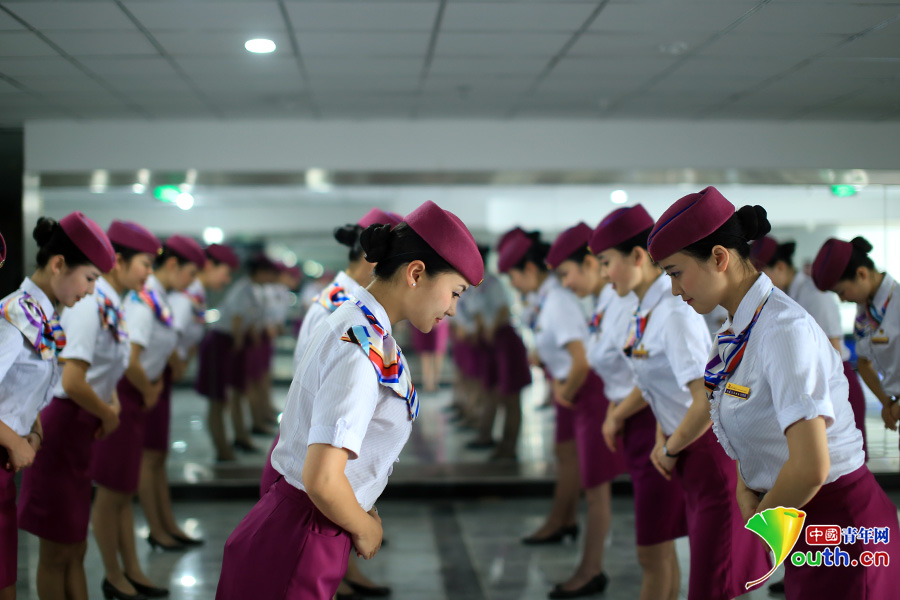 实拍美女“动花”礼仪训练 鞠躬有三种角度