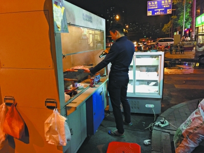 “这个设备我上个月才买的,花了我小一万块钱呢,效果不错。”摊主对于这个新设备很满意,“以前我就支个铁架子站在路边直接烤,城管老来管,换了这个设备,环保了,城管不管了。”