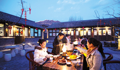漫步古北水镇,可谓一步一景,步移景换。在这里,游客可以泡着温泉望长城,体验时空穿越的沧桑之美,或是炒上几个小菜,点亮老式煤油灯,款待多年不见的故乡老友,体验一份浓浓的乡愁。