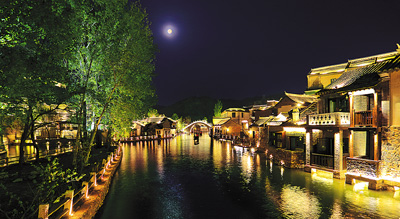 日前,水镇最新开放了夜游活动,游客可以在晚上欣赏桨声灯影里的古镇风貌,尽情领略古镇之美。