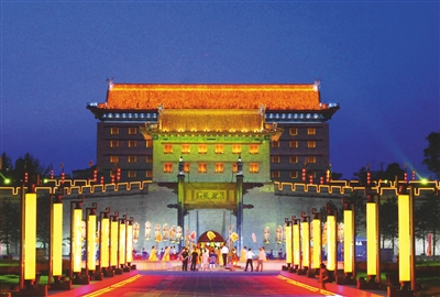 陕西西安城墙南门区域综合改造工程,是西安市委、市政府保护历史文化、优化城市环境、提升城市功能的重大决策。通过综合提升改造,南门区域实现城、墙、河、路、景的融合发展,展示了西安城市文化风貌,延续了历史文脉,提升了城市品位。图为西安市南门文化广场改造之后,定期为市民举行文化艺术表演。
