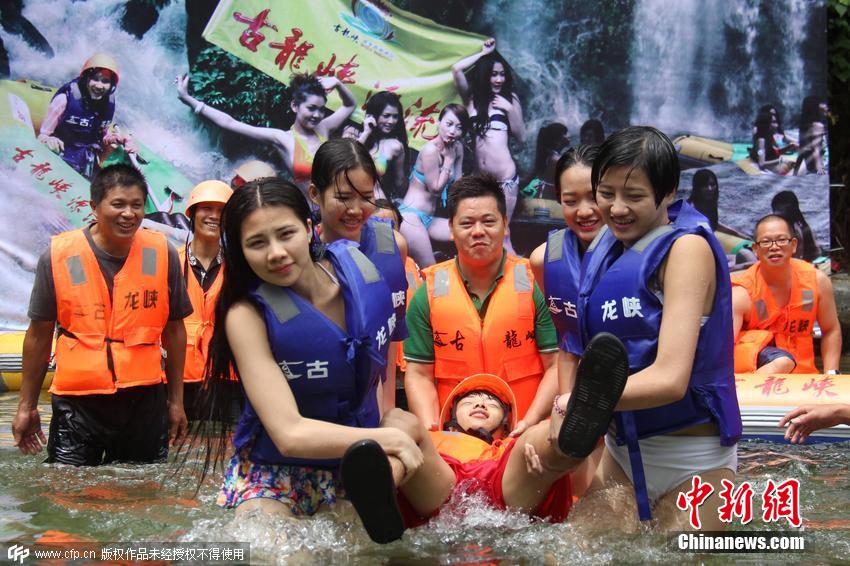2015年07月09日,广东省清远市,被同行誉为魔鬼训练的“古龙峡护漂队”在清远古龙峡漂流进行高强度的集训,首期8名符合条件的美女护漂队将在这里进行为期三天的集训。其中也包括对男护漂队员进行人工呼吸训练。图片来源:CFP视觉中国