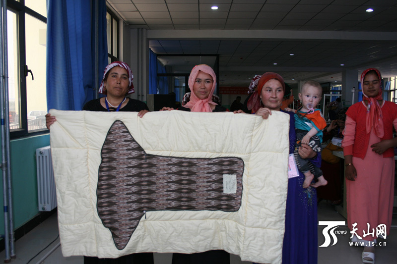 图尔荪尼亚孜 亚森与乡亲们,制作了一款三角被抱枕。这个过程持续了三个小时,首次尝试这种多功能产品的他觉得很新鲜。
