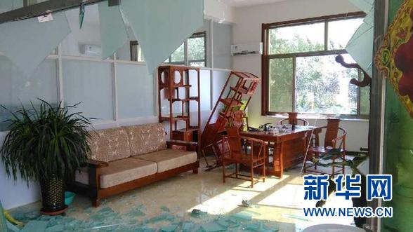 在距离爆炸地点一公里处的建筑物的玻璃几乎全被震碎(7月12日摄)。 新华社记者 曹国厂 摄