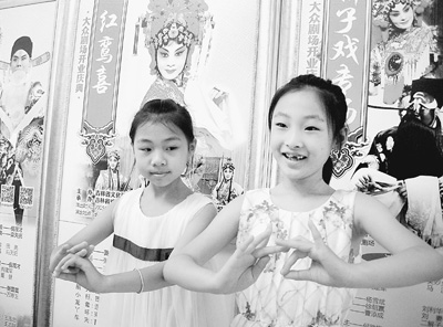 图为刘宁慧和翟敏晴在秀京剧基本功。