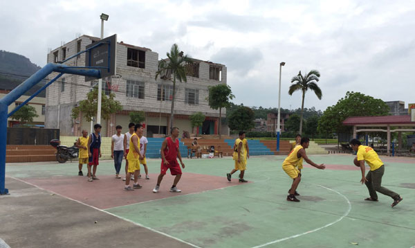 新华网北京7月14日电(王莹)一块水泥篮球场,一群年轻人,一场篮球友谊赛。这是广西玉林石寨村村民日常生活的一个场景。