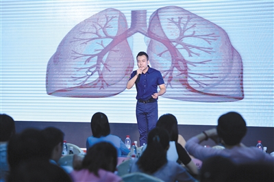 7月12日,由中华医学会科普分会主办,北京大学第一医院协办的扬子江杯第二届全国医学科普能力大奖赛在北京举行。图为大赛参赛选手在演讲展示医学科普知识。 新京报记者 吴江 摄