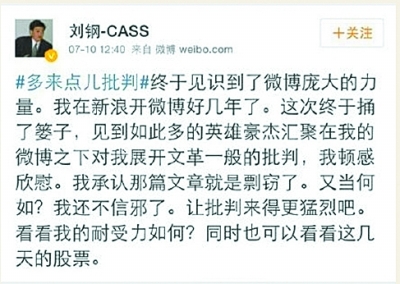 最近几天,微博认证为“中国社科院哲学研究所研究员”的刘钢火了,比北方40度的高温天气还火。这位研究员7月8日在科学网实名博客发表了一篇关于换头手术的文章,被网友和原作者发现是明显的抄袭。刘钢不以为耻,在微博上与网友对战,屡屡爆出“我剽窃了又当如何”、“什么是脸”等惊人之语。