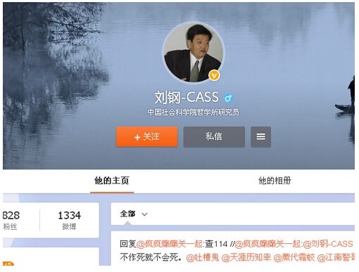如果刘钢不是哲学所的人,那么,中国社科院有必要捍卫本单位的学术清誉,依法追究这个虚假微博认证的来龙去脉。