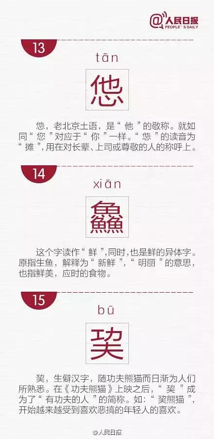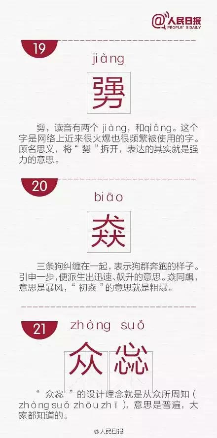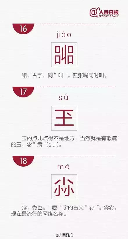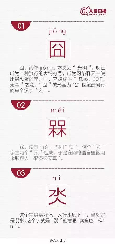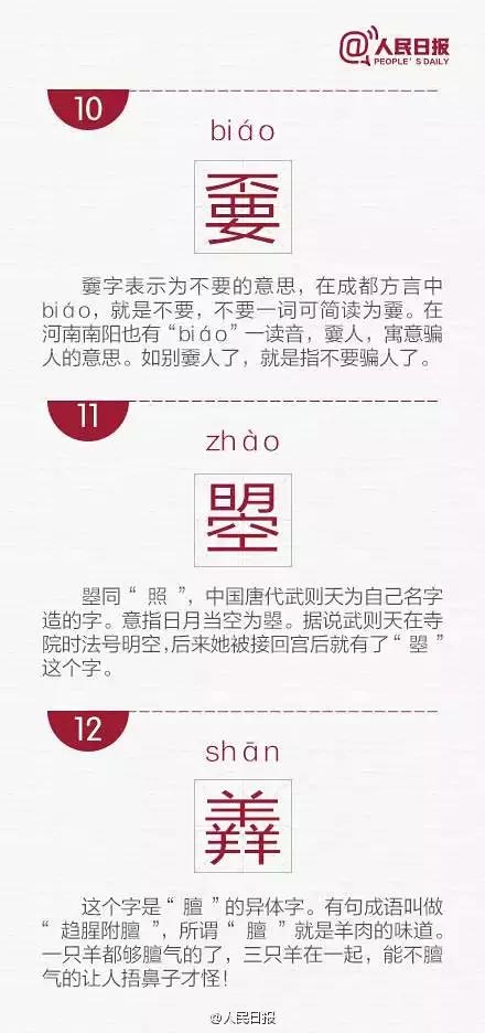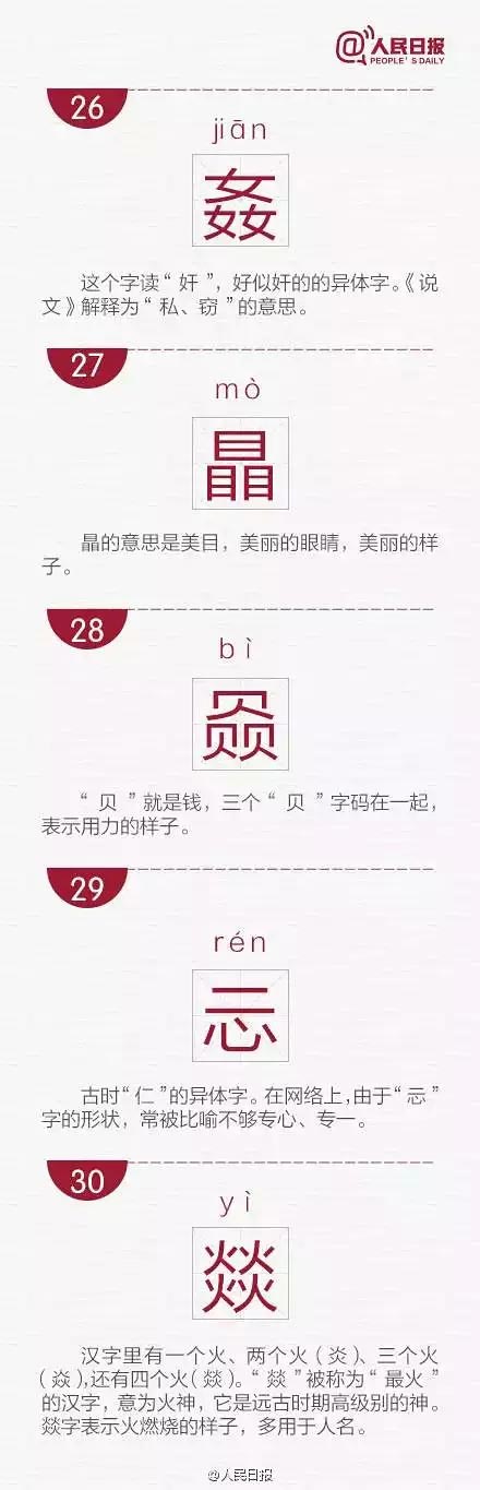 囧、槑、氼、烎、垚、圐圙、嘦、嫑、怹……这些本是汉语中的生僻字,却在网络上被赋予新的意义,意外爆红。但是你知道他们的本来读音和意思吗?30个被冠以各种“最”字的生僻字,你认得几个?学习之后,去考考你的小伙伴!