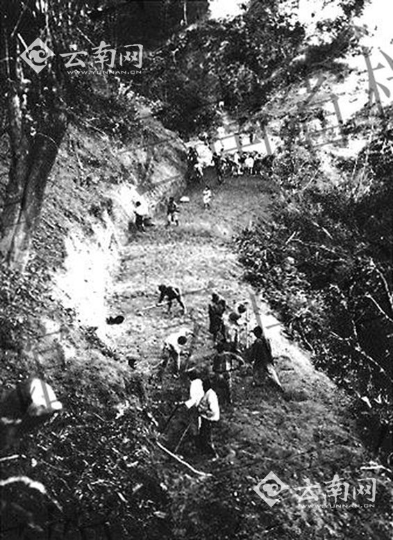 图为修筑滇缅公路的云南民众。