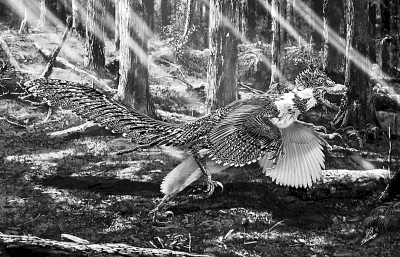大多数来自辽宁的驰龙类体型与家猫或中型犬相仿,具有较长的前肢和布满羽毛的宽大翅膀。不过,天宇盗龙是唯一的例外——其体长接近两米,前肢相对较短且没有任何保存下来的羽毛。对于科学家来讲,与天宇盗龙有着类似身形的近亲有没有羽毛仍然未知。据吕君昌介绍,与天宇盗龙相比,振元龙身形略小(身长在126厘米到165厘米之间),前肢比例虽然短小,却支撑起宽大的带羽毛翅膀,不过是否承担了任何飞行能力还不清楚。