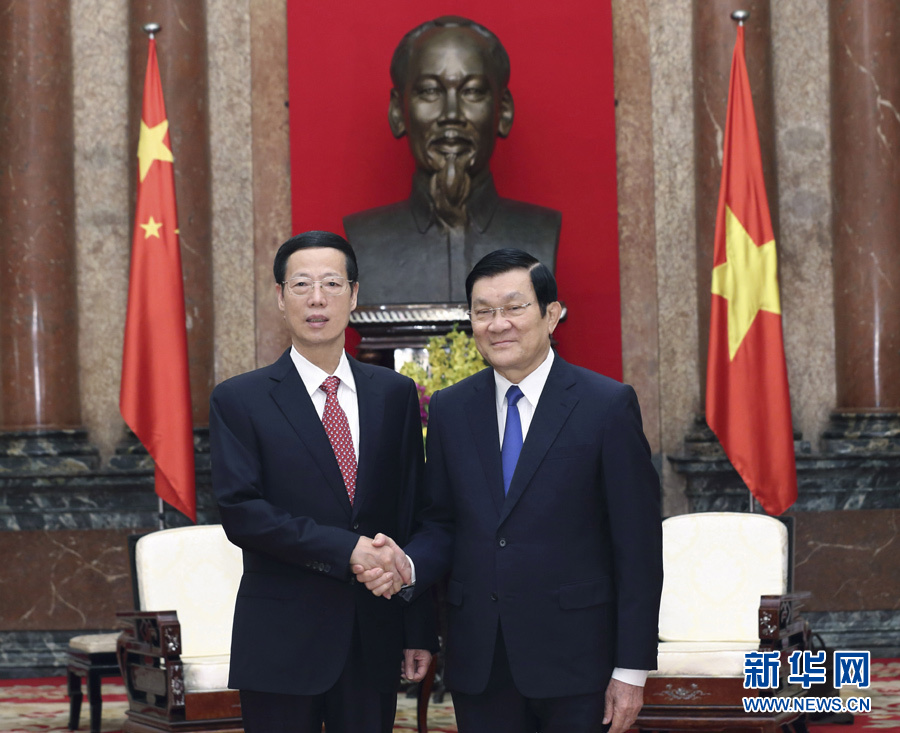 7月17日,中共中央政治局常委、国务院副总理张高丽在河内会见越南国家主席张晋创。 新华社记者兰红光摄
