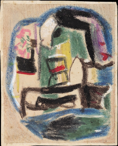 在画坛,很少看到画家的蜡彩画,好像蜡笔只是“儿童玩具”,难登大雅。对于吴大羽,蜡彩却是另一方广阔天地,他沉醉其中,画了许多幅。