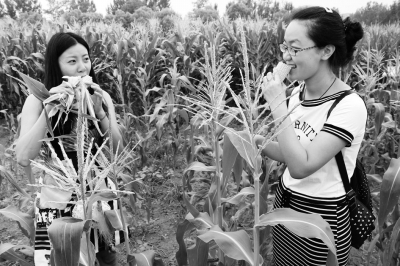 近日,北京市海淀区农科所示范基地的新品种甜玉米“美珍204”和“美珍206”进入采摘期,这两种甜玉米生吃起来十分香甜脆爽,有奶油水果的味道,受到农业专家和消费者一致好评。据了解,这两个新品种由海淀区农科所于2014年从美国引进,目前在海淀区的21个农业园区进行种植示范,收获季节为7月中旬和10月初。图为游客在农科所示范基地采摘品尝。本报记者芦晓春摄
