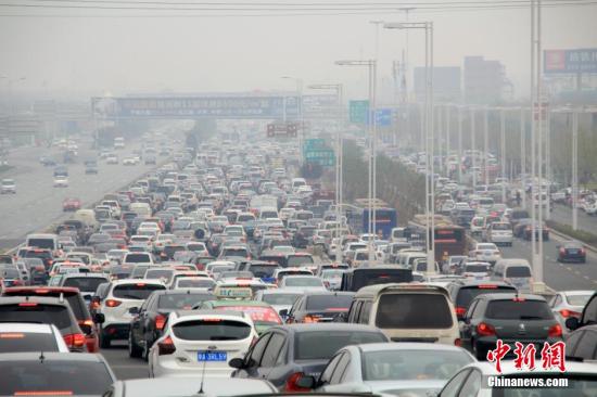 资料图:大批车辆在连霍高速郑州柳林入口处排队。中新社发 冯磊 摄 图片来源:CNSPHOTO