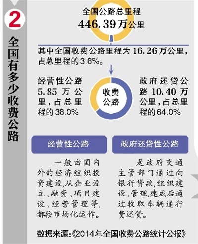 国家行政学院教授王伟:我们国家公路发展的税收主要是两种,一是车购税,主要用于公路建设;二是成品油消费税,主要用于非收费普通公路养护。而且成品油消费税并不是全部都用于普通公路养护,中间很大一部分是分给了航道养护、运输管理、环境保护和新能源发展,甚至还要分给农民的农业机械柴油和渔民渔船柴油的补助。所以在这种情况下,收费公路自身的养护管理、债务偿还等,就需要通过车辆通行费予以保证。