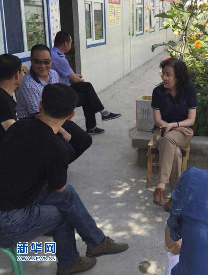 邱树华(右一)在乌鲁木齐市安宁渠镇广东庄子村安置点调研(7月15日摄)。