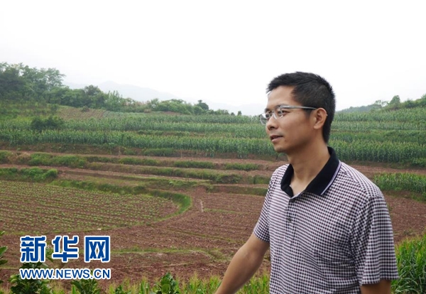 刘涛在自己种植红心猕猴桃的山地前(6月21日摄)。新华社记者 李坤晟 摄
