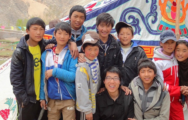 河北保定学院西部支教志愿者和藏族学生们在一起合影留念。