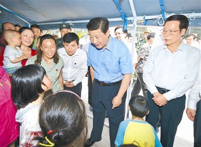 2013年5月21日,习近平到四川芦山地震灾区考察,看望慰问受灾群众。记者黄敬文摄