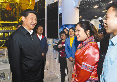 2013年5月4日,习近平来到中国空间技术研究院展厅,参观空间技术成就展。之后,又来到会议室,同各界优秀青年代表座谈。
