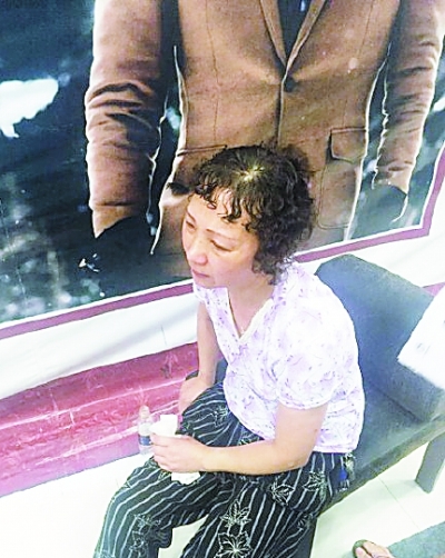 此时,电梯依旧还在运行,女子的身体明显开始往下陷。
